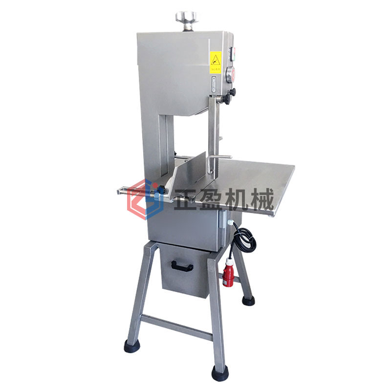 6、絕對不能在沒有任何防護的情況下,直接用手抓住肉去切割,特別是在鋸比較小的肉制品時,例如豬蹄。高速運轉的鋸帶,即使帶了手套也會傷害手指,手套僅能延緩和減輕傷害,決不能麻痹大意,操作時要集中思想,特別小心。
